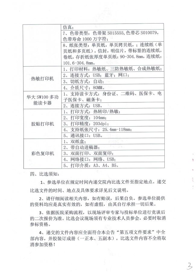双辽市中心医院 三大中心(康复院区)组装办公电脑、激光打印机多功能读卡器、彩色复印机院内招标采购公告(二次)