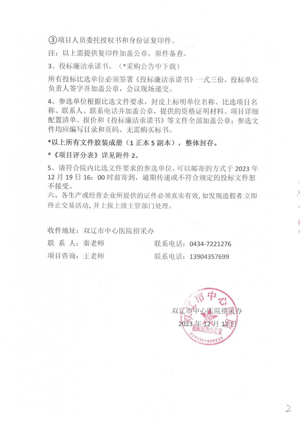双辽市中心医院二号楼整体灭蟑螂项目院内比选中标通知书